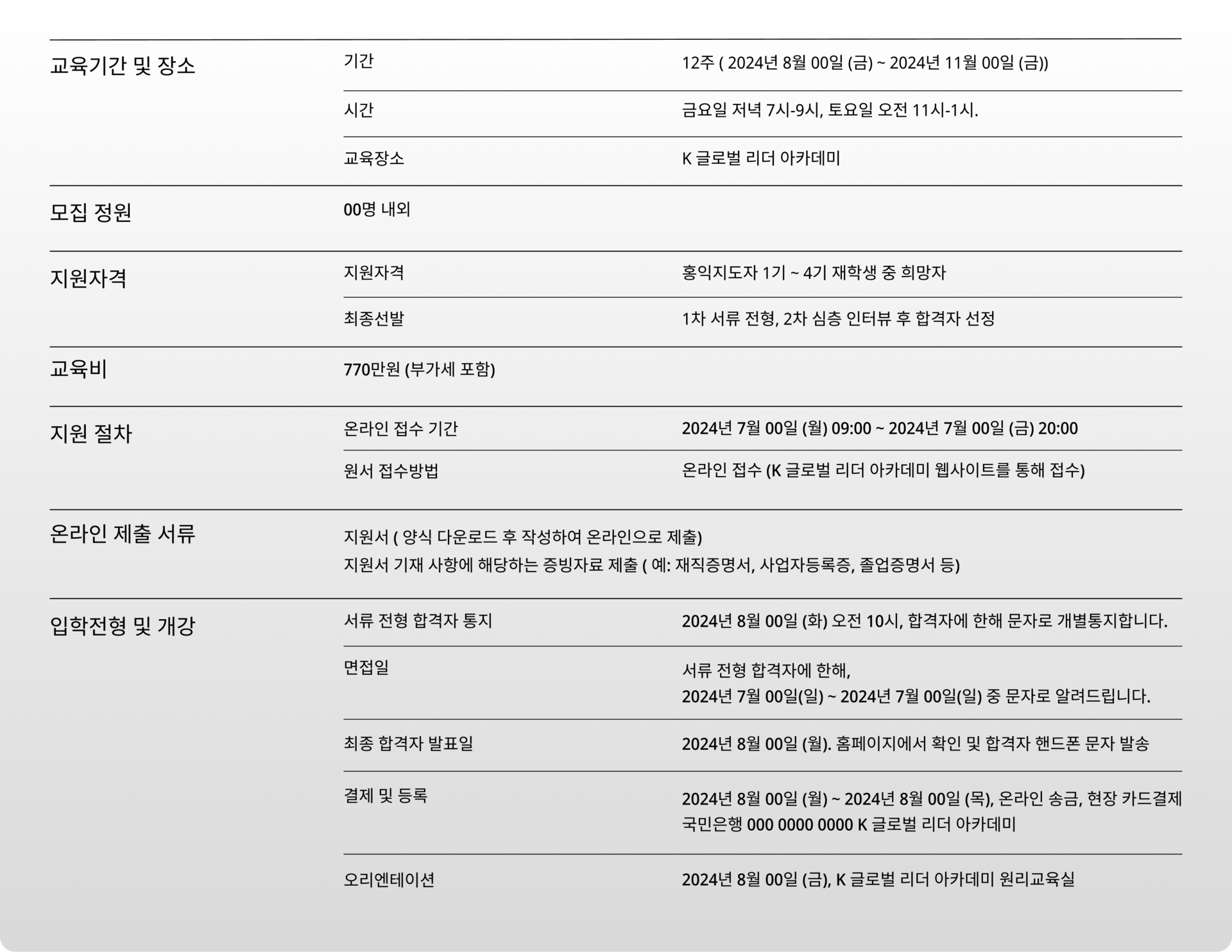 2024년 8월 최초로 특별 강사 배출을 위한 과정을 개설하게 되었습니다.